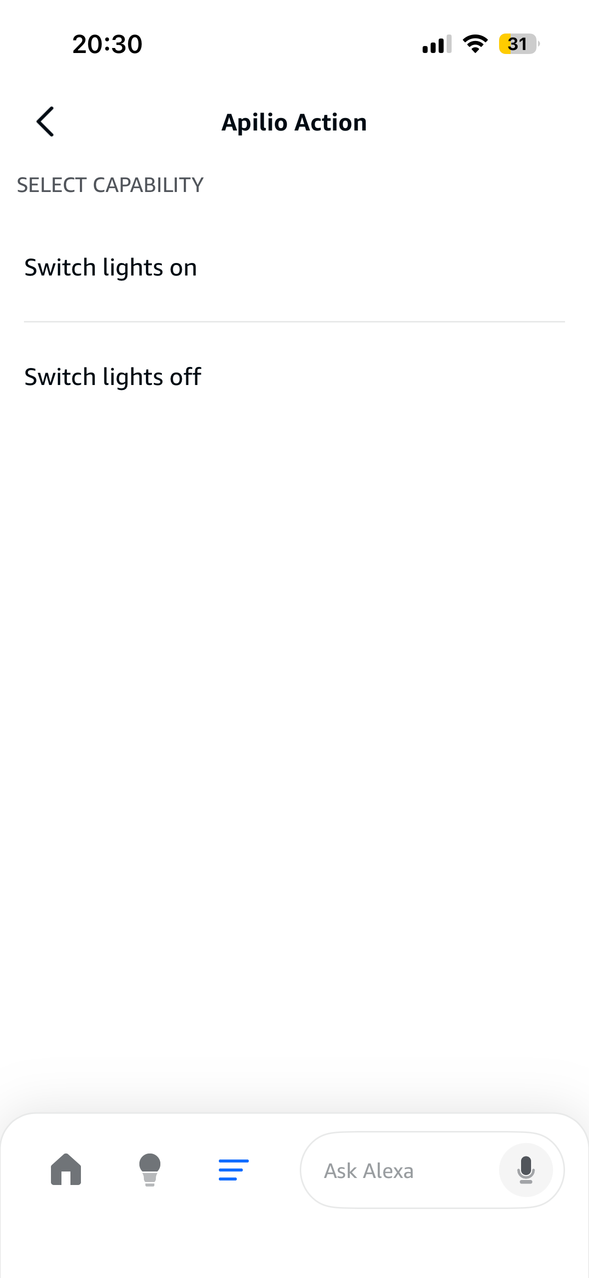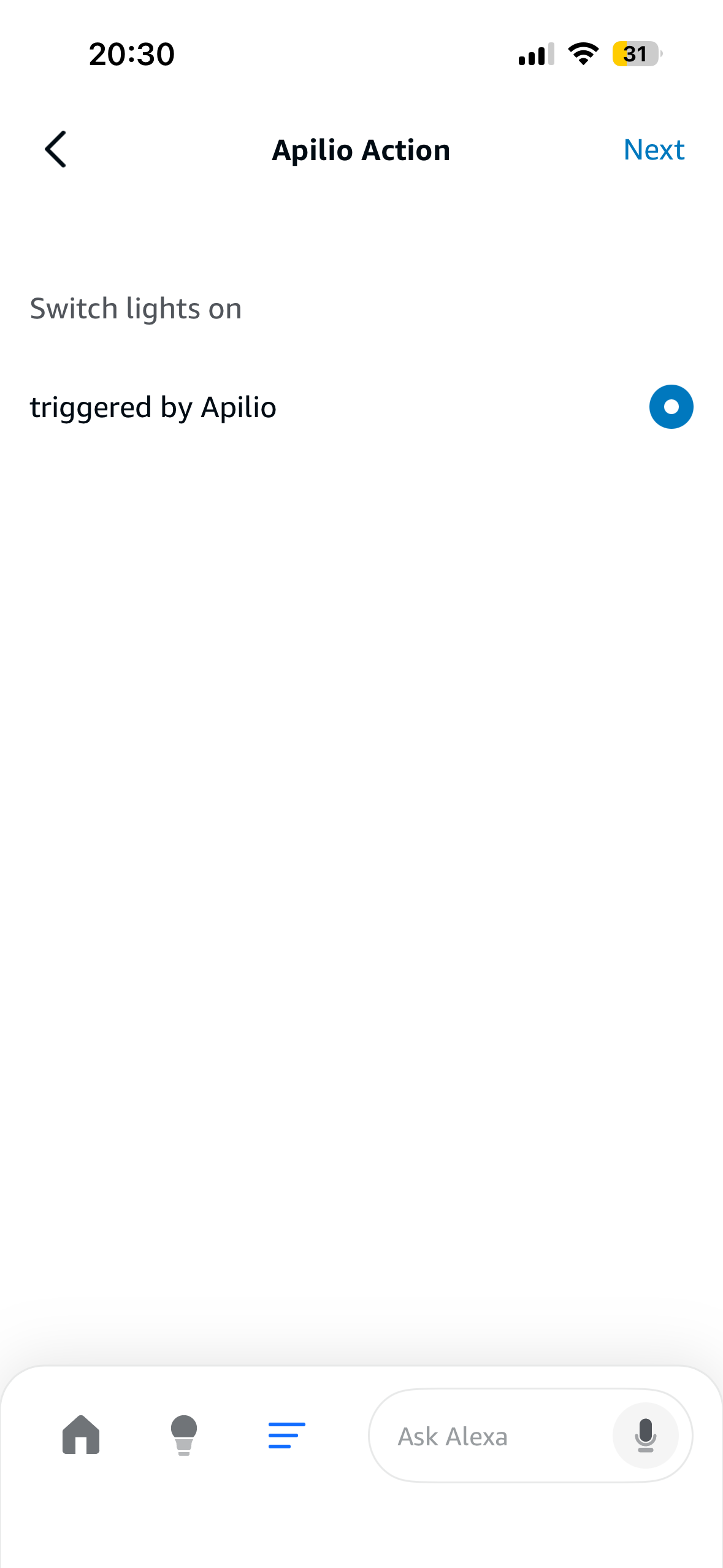 Step 2: Using Apilio as a trigger of an Alexa routine