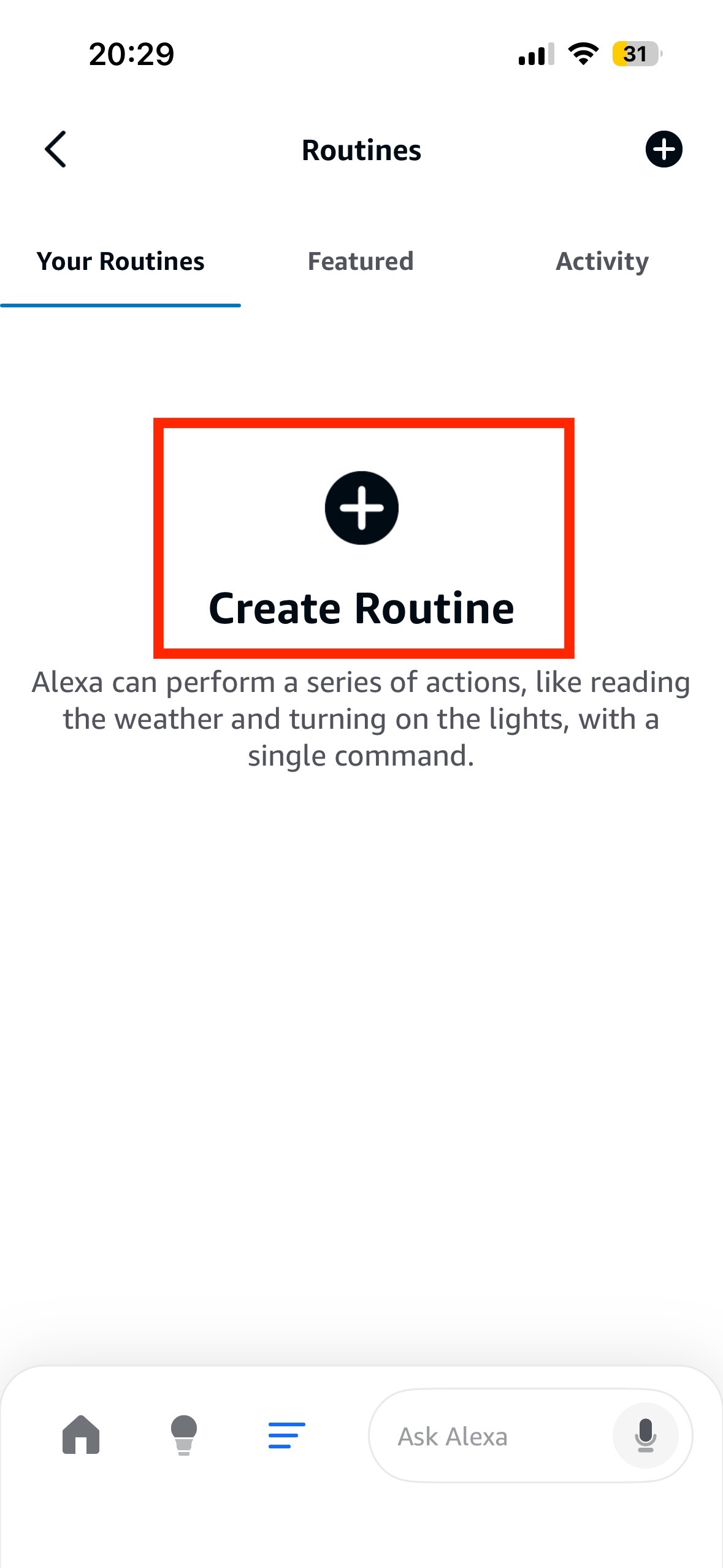 Tap on “Routines”, then “Create Routine”