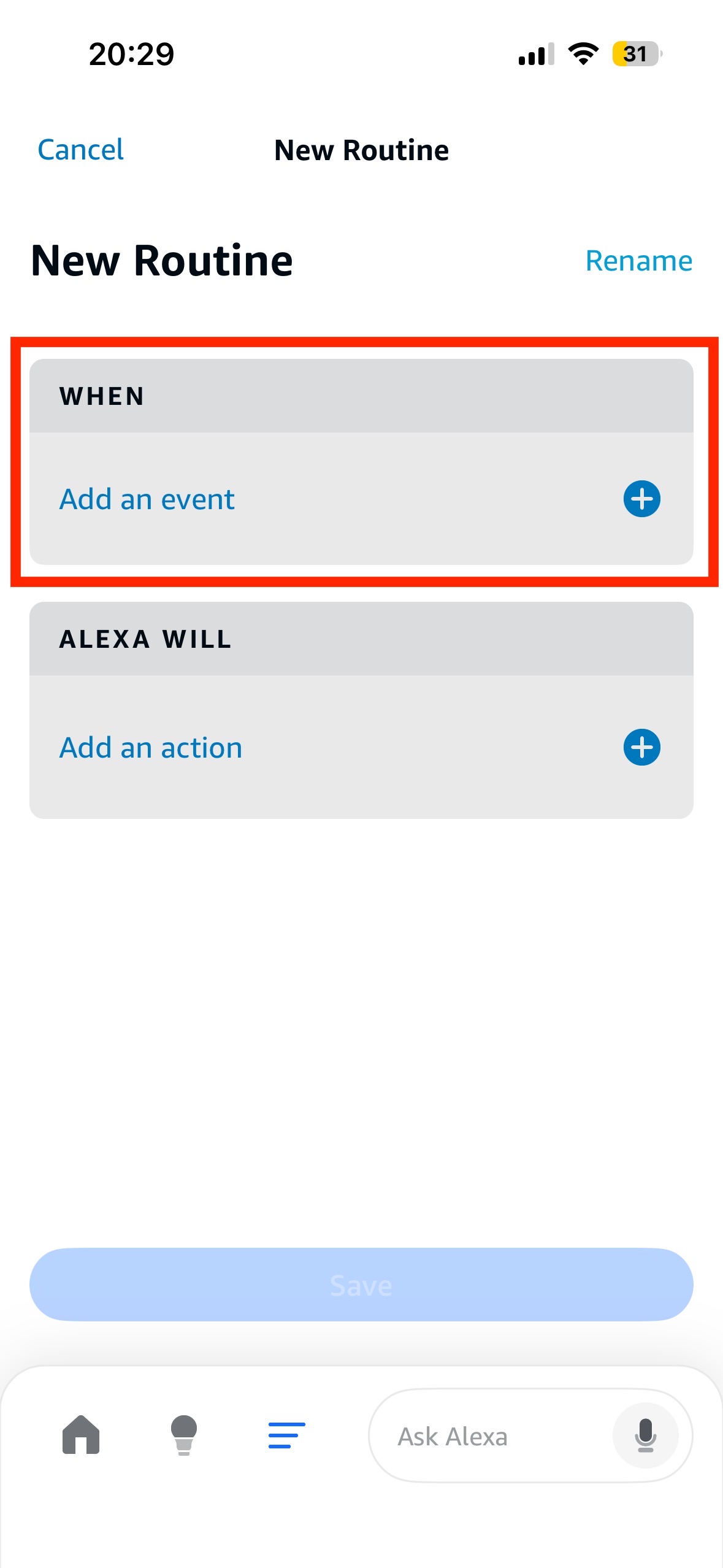 Creating a new Alexa routine that is triggered by Apilio