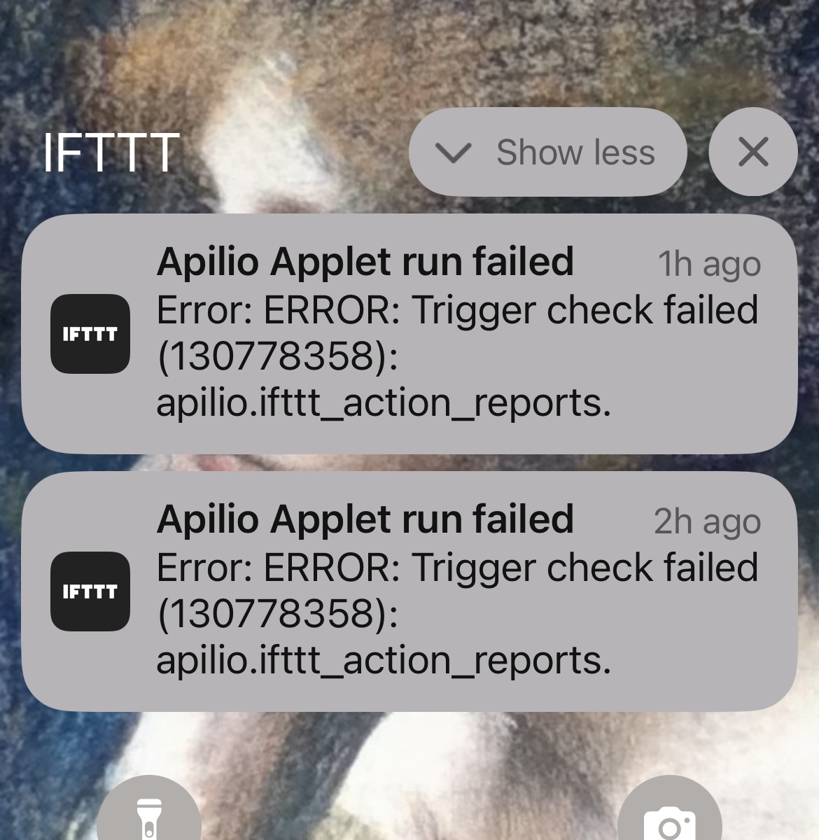 Hi pebneter, thanks for the update. Tonight one apilio ‘call’ to IFTTT went through OK at 16.21 and another two minutes later threw up the same error message. I’ll monitor and let you know what happens.