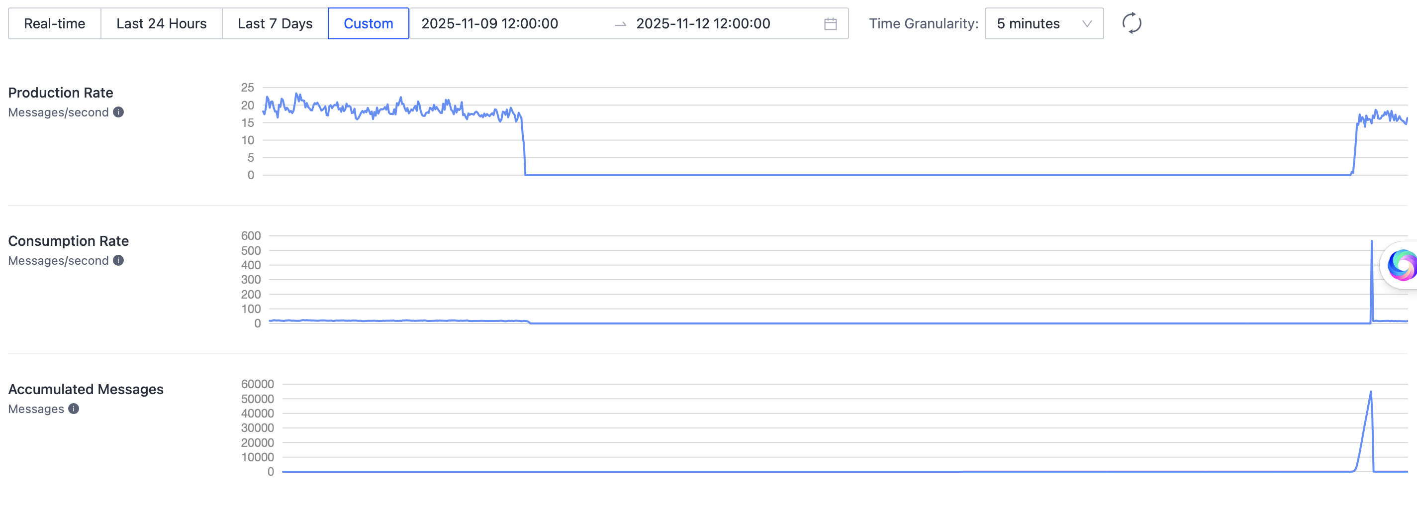 - On November 12, around 7am (~48 hours later), device updates suddenly started to come in again