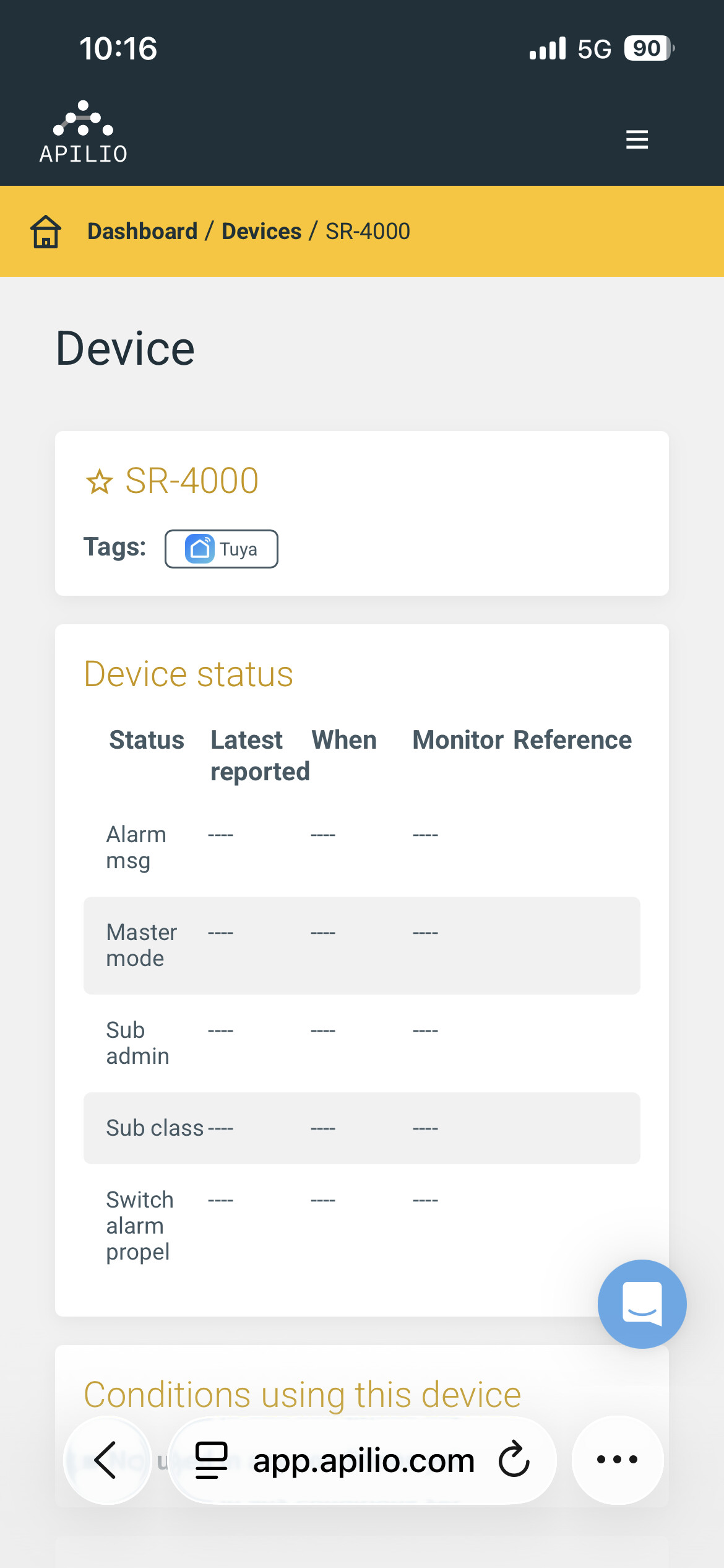 Not sure how to access support chat? Here is screenshot of device as seen from devices section of Apilio: